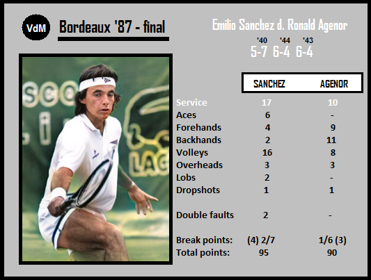 Just a week after defeating Agenor in the Gstaad final (6-2, 6-3, 7-6), Sanchez was again better in the tournament’s conclusion, again in three sets, but in France “the best of three” format obligated. The Spaniard [15] played the entire final attacking the net behind his 1st serve, in the decider – when the wind was blowing faster – Sanchez accelerated his first serves (at one junction he struck three aces in a row). Agenor [63] was seeking his maiden Grand Prix title (0-4 record in the finals after Bordeaux) and could have imagined himself as a potential champion leading 3:2* (40/15) in the 2nd set – Sanchez fought off the double break point quickly, the same as he was serving at 4:3 (15/40) in the 3rd set. Given that neither of the finalists was a big server, it’s quite astonishing that in the 32 games played, there were only three breaks of serve.