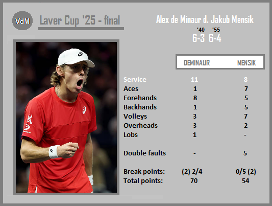12:6 Alex de Minaur – Jakub Mensik 6-3, 6-4